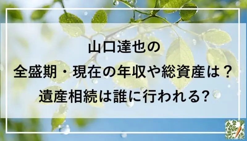 本記事では、信頼できる報道をもとに、山口達也さんの全盛期・現在の年収や総資産、そして遺産相続の行方について詳しく解説します。